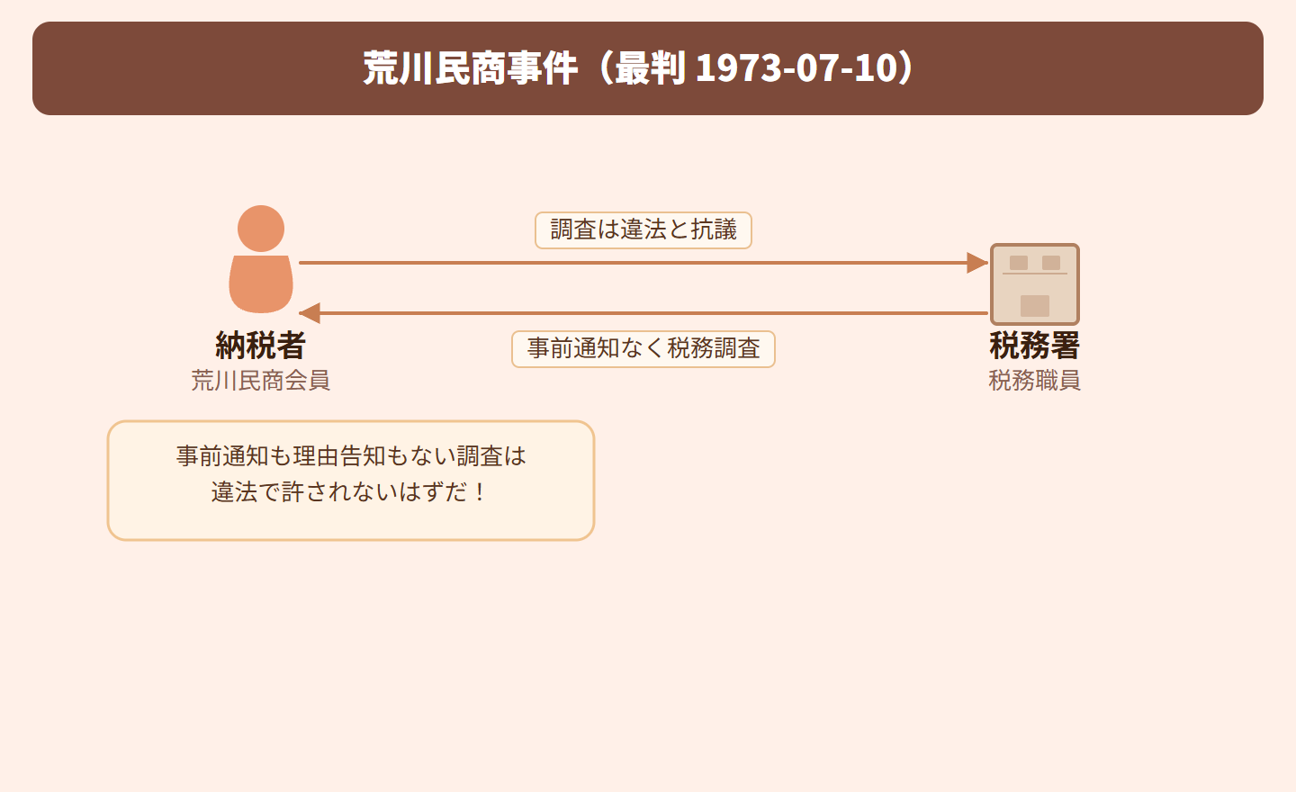 要するに、税務調査は事前にアポなしでも来られるし、理由を詳しく説明しなくても法律上問題ない、確定申告前でも調査できるってこと!税務署には広い調査権限が認められているんですね。